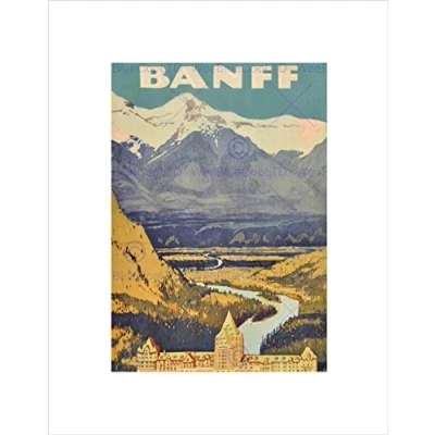 Wee Blue Coo Travel Banff Canada Rockies Hotel Mountain Wall Art Print