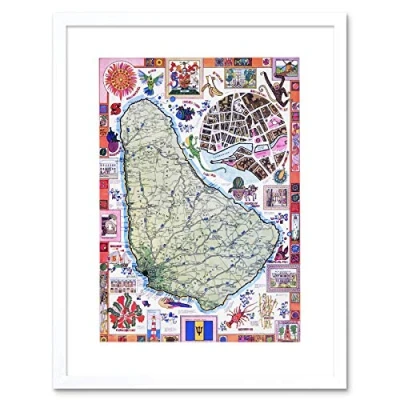 Wee Blue Coo Travel Barbados Caribbean Tropical Map Ad Picture Framed Wall Art Print