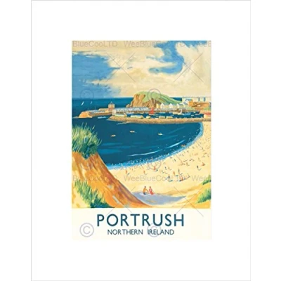 Wee Blue Coo TRAVEL BEACH COAST HARBOUR PORTRUSH NORTHERN IRELAND BRITISH RAIL PRINT B12X7822
