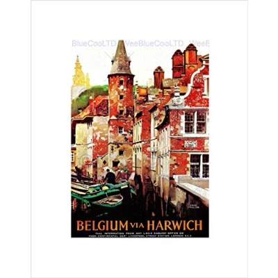 Wee Blue Coo TRAVEL BELGIUM HARWICH PORT SHIP FERRY TOWN HALL UK FRAMED PRINT B12X11407