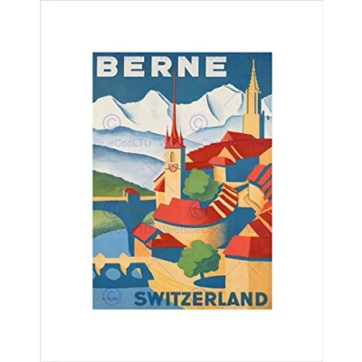 Wee Blue Coo Travel Berne Switzerland Walled Medieval City Alp Wall Art Print