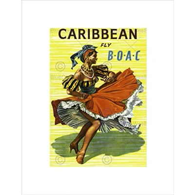 Wee Blue Coo TRAVEL BOAC AIRLINE CARIBBEAN FLAMENCO DANCER VINTAGE ADVERT ART PRINT B12X1503