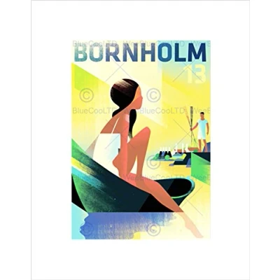 Wee Blue Coo Travel Bornholm Island Baltic Sea Denmark Boat Girl Oar Town Art Wall Print