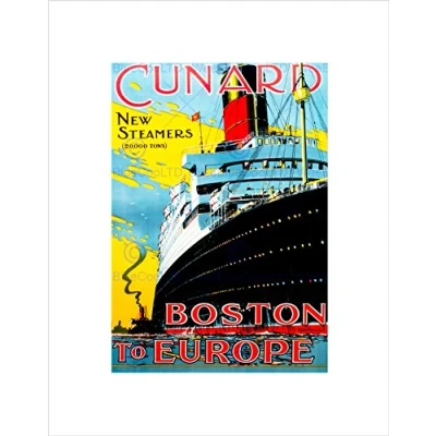 Wee Blue Coo Travel Boston Europe Ship Liner Steamer Ocean Sea Boat Wall Art Print