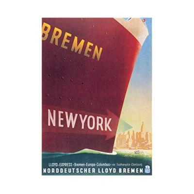 Wee Blue Coo Travel Bremen New York Ship Liner Germany Vintage Advert Wall Art Print