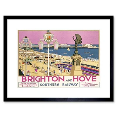 Wee Blue Coo Travel Brighton Hove Sussex Beach Resort Pier Sea Pink Sky Framed Wall Art Print