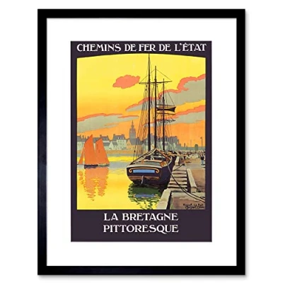 Wee Blue Coo Travel Brittany France Harbour Boat Ship Port Sea Framed Wall Art Print