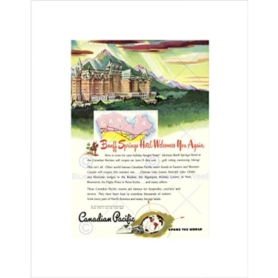 Wee Blue Coo TRAVEL CANADA BANFF SPRINGS HOTELAD PACIFIC MOUNTAIN RAIL ART PRINT B12X10165