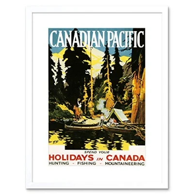 Wee Blue Coo Travel Canada Holiday Vacation Lake Boat Forest Game Framed Wall Art Print