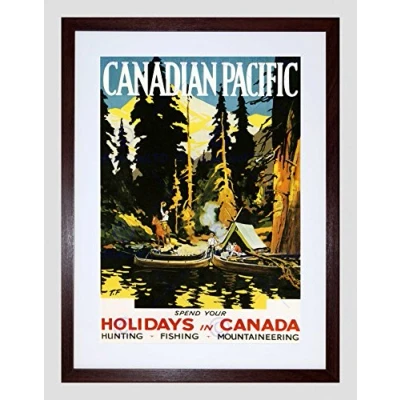 Wee Blue Coo Travel Canada Holiday Vacation Lake Boat Forest Game Framed Wall Art Print