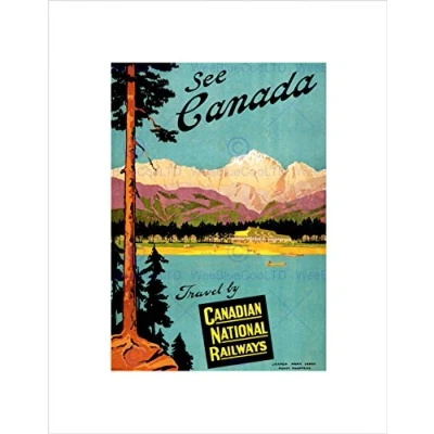Wee Blue Coo Travel Canada Rail Train Lake Mountain Scenic Tree Pine Wall Art Print