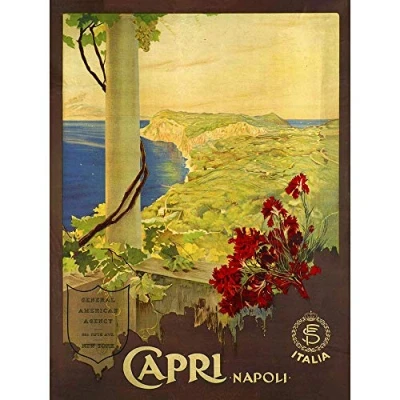 Wee Blue Coo Travel Capri Island Gulf Naples Italy Sea Sun Flower Art Print Poster Wall Decor 12X16 Inch