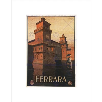 Wee Blue Coo Travel Castle Moat Ferrara Italy Vintage Retro Advert Wall Art Print
