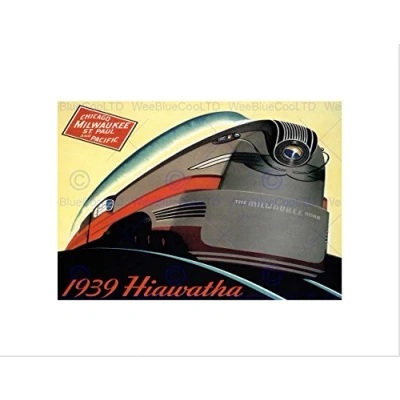 Wee Blue Coo Travel Chicago Cross Country Rail Service Train Engine Art Wall Print