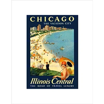 Wee Blue Coo Travel Chicago Illinois USA Beach Lake Boat Sand Wall Art Print