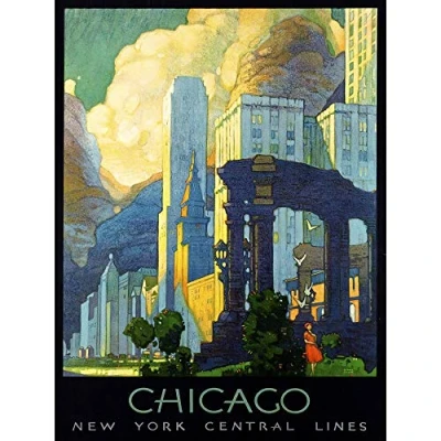 Wee Blue Coo Travel Chicago Illinois USA Cityscape Skyline Cloud Art Print Poster Wall Decor 12X16 Inch