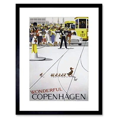 Wee Blue Coo Travel Copenhagen Smiling Duck Vintage Advert Retro Framed Wall Art Print