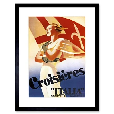Wee Blue Coo TRAVEL CRUISES SHIP SAILING BOAT ITALY VINTAGE ADVERT FRAMED ART PRINT B12X1557