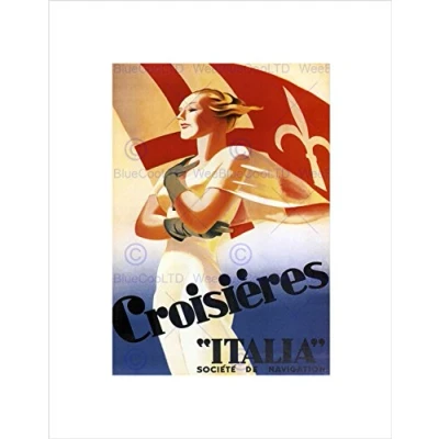 Wee Blue Coo Travel Cruises Ship Sailing Boat Italy Vintage Advert Wall Art Print