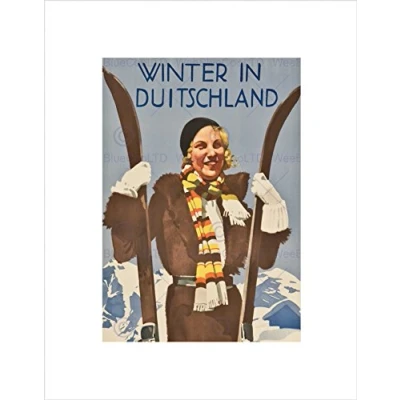 Wee Blue Coo TRAVEL DEUTSCHLAND GERMANY HOHLWEIN WINTER SKI BLACK FRAMED ART PRINT B12X7834
