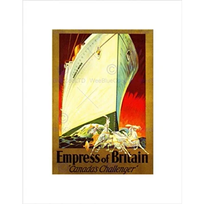 Wee Blue Coo TRAVEL EMPRESS BRITAIN OCEAN LINER CANADA CHARIOT HORSE FRAMED PRINT B12X10279