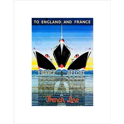 Wee Blue Coo TRAVEL ENGLAND FRANCE SHIP LINER CRUISE VINTAGE ADVERT FRAMED ART PRINT B12X1568