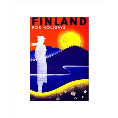 Wee Blue Coo TRAVEL FINLAND MIDNIGHT SUN FJORD FORSET VINTAGE FRAMED ART PRINT MOUNT B12X2949