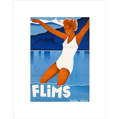 Wee Blue Coo TRAVEL FLIMS SWITZERLAND LAKE CAUMA SWIM ALPINE RESORT MOUNTAIN PRINT B12X6407