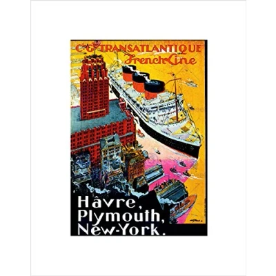 Wee Blue Coo TRAVEL FRENCH LINE SHIP BOAT NEW YORK LE HAVRE FRANCE VINTAGE ART PRINT B12X2953