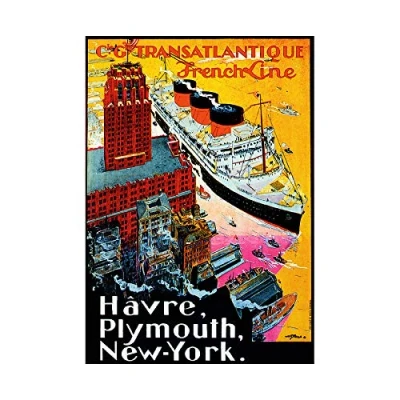 Wee Blue Coo Travel French Line Ship Boat New York Le Havre France Wall Art Print