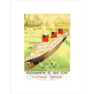 Wee Blue Coo Travel French Line Ship Liner Boat City Sea France Wall Art Print