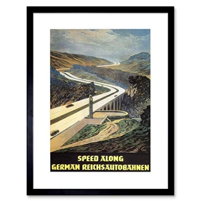 Wee Blue Coo TRAVEL GERMANY AUTOBAHN MOTORWAY UK VINTAGE ADVERT FRAMED ART PRINT B12X1576