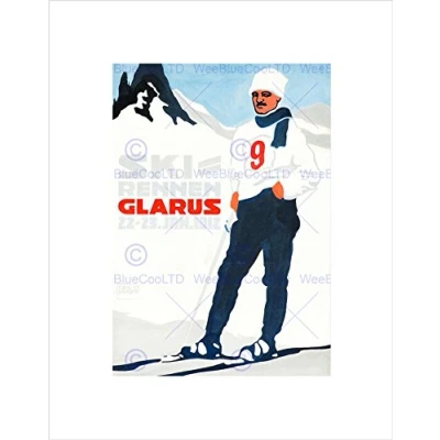Wee Blue Coo TRAVEL GLARUS SWITZERLAND WINTER SPORT SKI SNOW ALPINE RESORT ART PRINT B12X7288