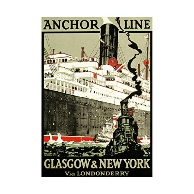 Wee Blue Coo Travel Glasgow New York Ship Liner Anchor Tug UK Wall Art Print