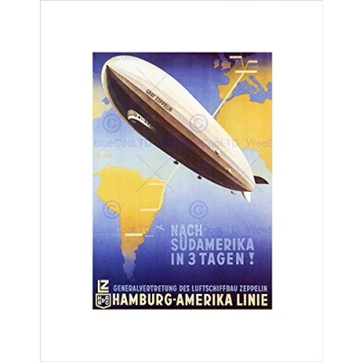 Wee Blue Coo Travel Hamburg Germany America South Zeppelin Airship Map Art Wall Print