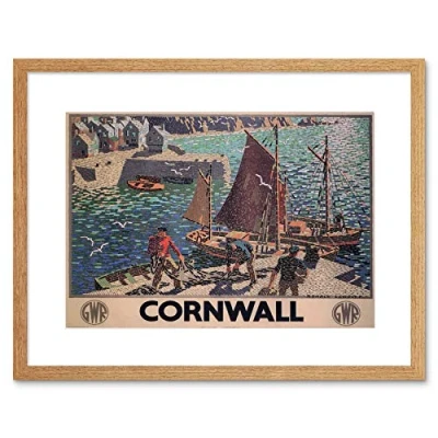Wee Blue Coo Travel Harbour Boat Fishing Cornwall Rail Gwr UK Advert Framed Wall Art Print