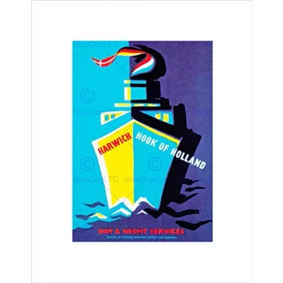 Wee Blue Coo Travel Harwich Hook Holland Ferry Route Boat Ship Sea UK Wall Art Print