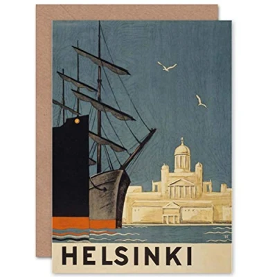 Wee Blue Coo TRAVEL HELSINKI FINLAND TUOMIOKIRKKO CATHEDRAL SHIP GREETINGS CARD