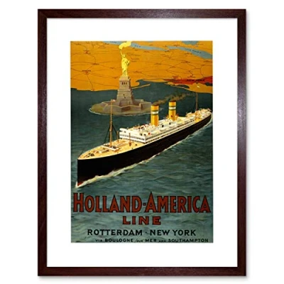 Wee Blue Coo Travel Holland America Line Ship Ocean New York Picture Framed Wall Art Print