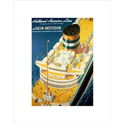 Wee Blue Coo TRAVEL HOLLAND AMERICA OCEAN LINER SHIP FUNNEL DECK NETHERLAND PRINT B12X3387