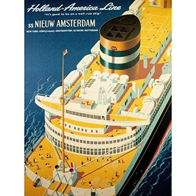 Wee Blue Coo Travel Holland America Ocean Liner Ship Funnel Deck Netherland USA Art Print Poster Wall Decor 12X16 Inch