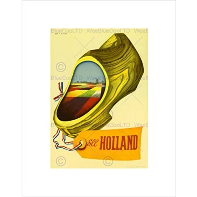 Wee Blue Coo Travel Holland Clog Windmill Netherlands Vintage Advert Wall Art Print