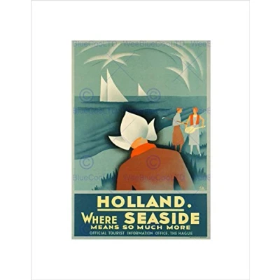 Wee Blue Coo TRAVEL HOLLAND NETHERLANDS BOAT SEA SPORT DUTCH BONNET HAT FRAMED PRINT B12X6428