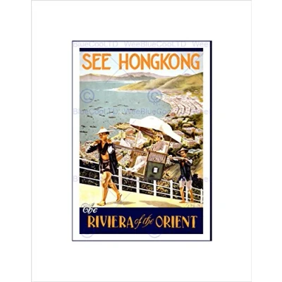 Wee Blue Coo TRAVEL HONG KONG RIVIERA ORIENT VINTAGE ADVERT FRAMED ART PRINT MOUNT B12X1591