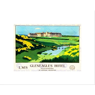 Wee Blue Coo Travel Hotel Gleneagles Scotland Lms Railway Golf Wall Art Print