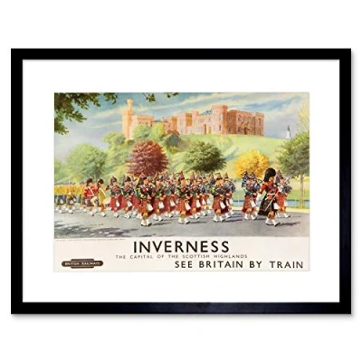 Wee Blue Coo Travel Inverness British Railways Scotland Highlander Framed Wall Art Print