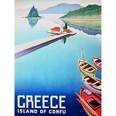Wee Blue Coo Travel Island Corfu Greece Boats Pier Art Canvas Print