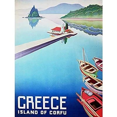 Wee Blue Coo Travel IslanDecorfu Greece Boats Pier Art Large Print Poster Wall Decor 18x24 inch
