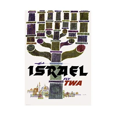 Wee Blue Coo Travel Israel TWA Menorah Jerusalem Airline Vacation Ad Wall Art Print