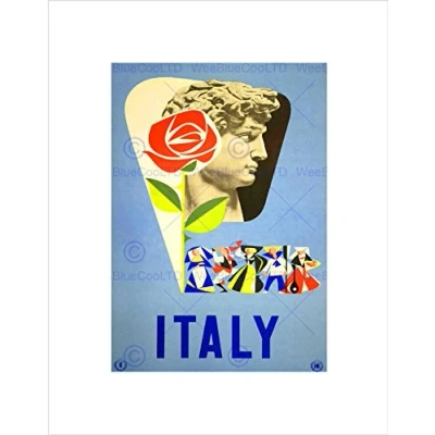 Wee Blue Coo TRAVEL ITALY MICHAELANGELO DAVID FLORENCE VINTAGE ADVERT FRAMED PRINT B12X1599
